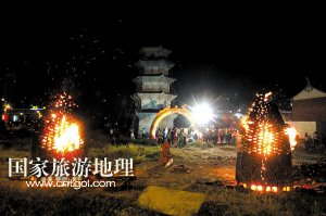 國家旅游地理 福建泉州9月20日訊(記者_(dá)黃偉強(qiáng) 秦越 文圖) 中秋夜,第三屆“燒塔仔”中秋民俗活動在晉江安海安平橋畔白塔下舉行,兩座高4米、寬1.5米的磚塔里正冒著熊熊烈火,現(xiàn)場火光沖天,給安海老百姓帶來了別樣的節(jié)日歡樂。