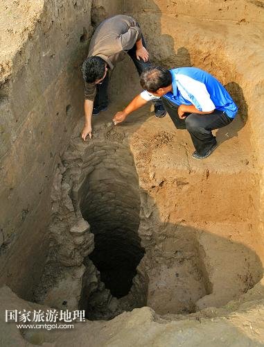 國家旅游地理 河北滄州9月21日訊 9月20日,考古人員在肅寧縣梁村鎮(zhèn)北白寺村附近的古村落遺址發(fā)掘現(xiàn)場工作。近日,南水北調(diào)保滄干渠工程征遷核查期間,在河北省肅寧縣梁村鎮(zhèn)北白寺村發(fā)掘了一處古村落遺址,考古人員進行搶救性發(fā)掘,出土了大批唐宋時期的生活用品、陶瓷碎片及一眼古井。據(jù)介紹,目前考古隊已挖出13個探方,該古村莊遺址的搶救性發(fā)掘工作還將持續(xù)3個月,探方數(shù)量將增加到80多個,面積達(dá)2000平方米。該遺址的發(fā)掘,有助于了解當(dāng)?shù)禺?dāng)時的經(jīng)濟狀況和生活狀態(tài)。 /新華社記者 楊世堯 攝