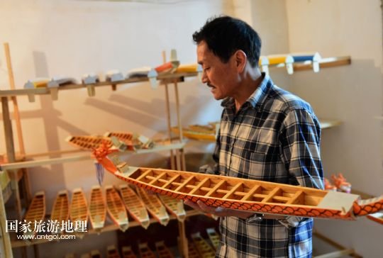 國家旅游地理 湖北宜昌5月15人訊 5月15日,手工藝人鄭祥龍?jiān)跒槲⑿妄堉凵淆堫^。端午節(jié)臨近,屈原故里湖北省秭歸縣歸州鎮(zhèn)手工藝人鄭祥龍精心制作一條條微型木制龍舟,準(zhǔn)備在端午文化節(jié)期間向中外游客進(jìn)行展示。