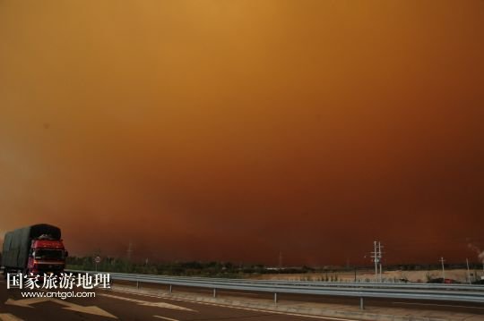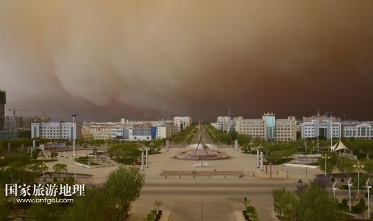 國(guó)家旅游地理 甘肅玉門5月23日訊 5月23日,在甘肅玉門市,突如其來(lái)的沙塵籠罩了整個(gè)城市。當(dāng)日上午,受新疆低槽冷空氣的影響,甘肅玉門境內(nèi)天空出現(xiàn)罕見的云層奇景和沙塵天氣,原本非常晴朗的藍(lán)天,霎時(shí)天昏地暗,同時(shí)伴有6至7級(jí)西風(fēng),能見度只有500米。新華社發(fā)(楊旭升 宋常青 攝)