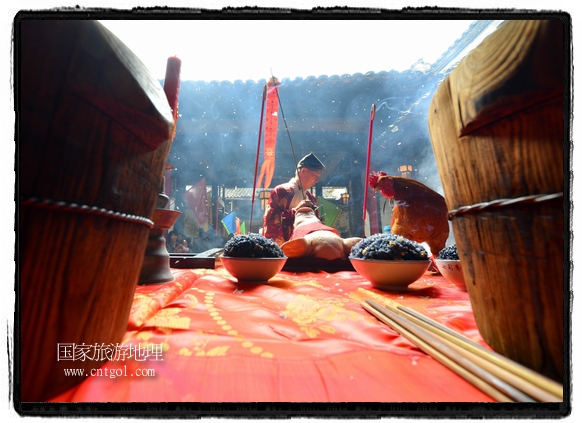 國(guó)家旅游地理 江西婺源(上饒)5月31日訊(特約記者王國(guó)紅 通訊員程新德攝影報(bào)道) “祭祀開(kāi)始、鳴炮奏樂(lè)、祭拜、主持人講話、結(jié)束鳴炮”,5月25日,農(nóng)歷四月初八,石佛村烏飯節(jié),村民將自家精心制作的烏飯端進(jìn)祠堂祭祀。江西省婺源縣段莘鄉(xiāng)石佛村每年都要舉行烏飯祭祖活動(dòng),各家各戶(hù)將自家精心制作的烏飯端進(jìn)祠堂……