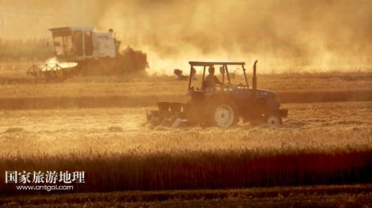 關(guān)中收獲夏糧的場景(6月5日攝)。朝邑鎮(zhèn)是關(guān)中糧倉的最東端,也是每年收獲夏糧最早的地方。